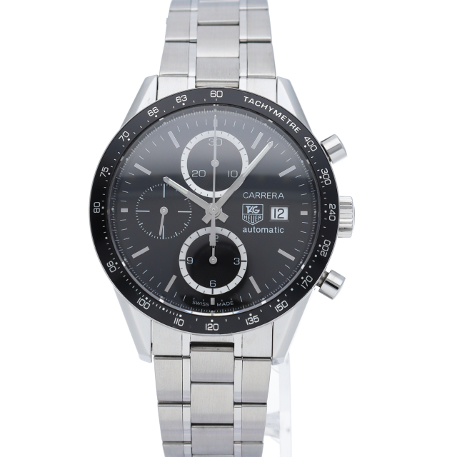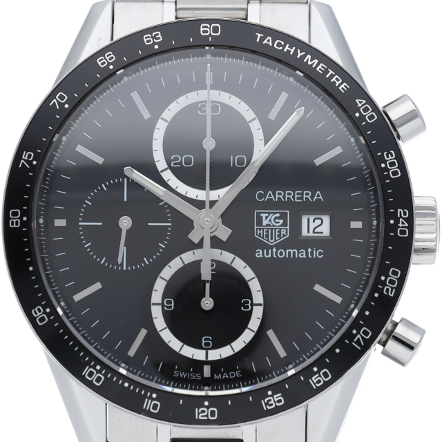 タグホイヤーの人気シリーズ「カレラ タキメーター クロノグラフ」。クロノグラフ機構、デイト表示機能付きでデイリーウォッチに最適です。