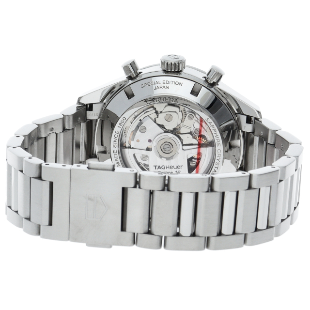 モーターレースからインスピレーションを受けて誕生した“カレラ”。こちらは、日本限定500本の希少なモデルになります。高級感のあるブラックシェル文字盤にブラックのインダイアルを備えたクロノグラフモデルです。
