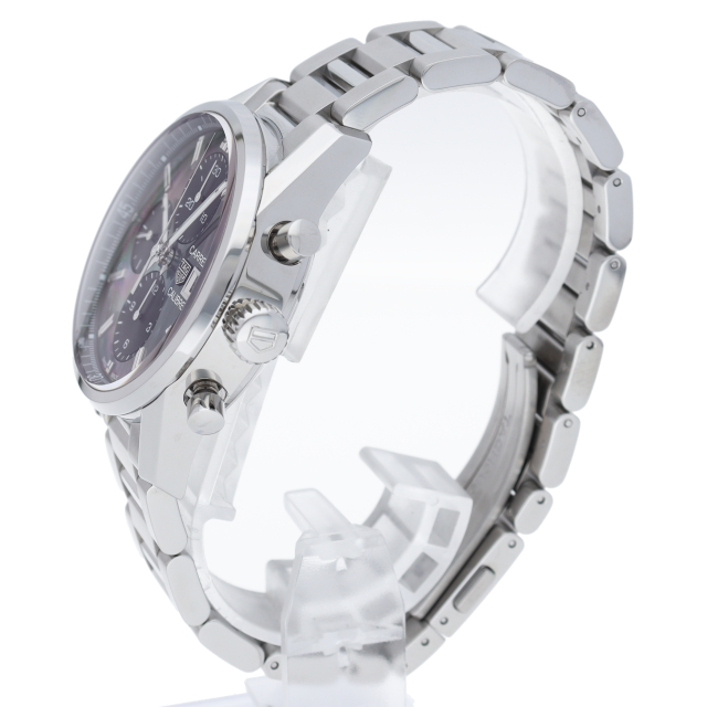モーターレースからインスピレーションを受けて誕生した“カレラ”。こちらは、日本限定500本の希少なモデルになります。高級感のあるブラックシェル文字盤にブラックのインダイアルを備えたクロノグラフモデルです。