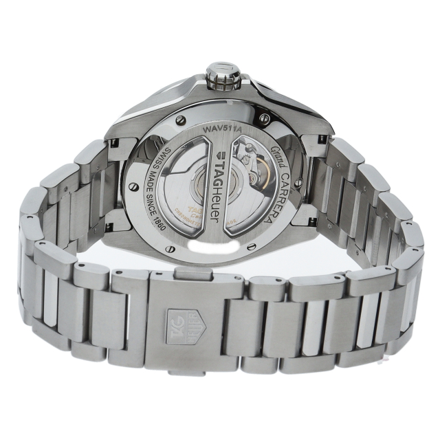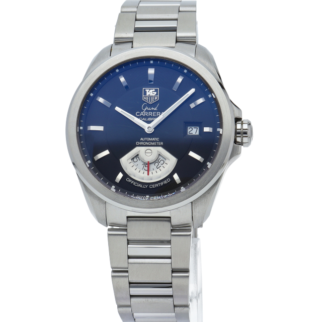 タグホイヤーの上級人気モデル「グランドカレラ」。ディスク回転式のインダイアルを配置、デイト表示機能も搭載した機能性・デザイン性共に優れた1本。