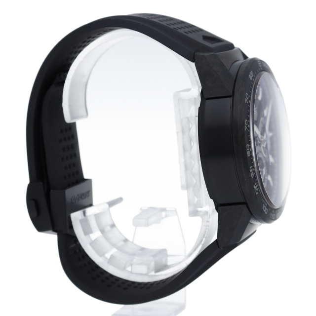 スポーティなデザインが人気のカレラ。ステンレスにカーボン加工を施したカラーがかっこよさを引き立てます。スケルトンで機械がむき出しのデザインは機械式時計好きの心をくすぐります。750本限定。
