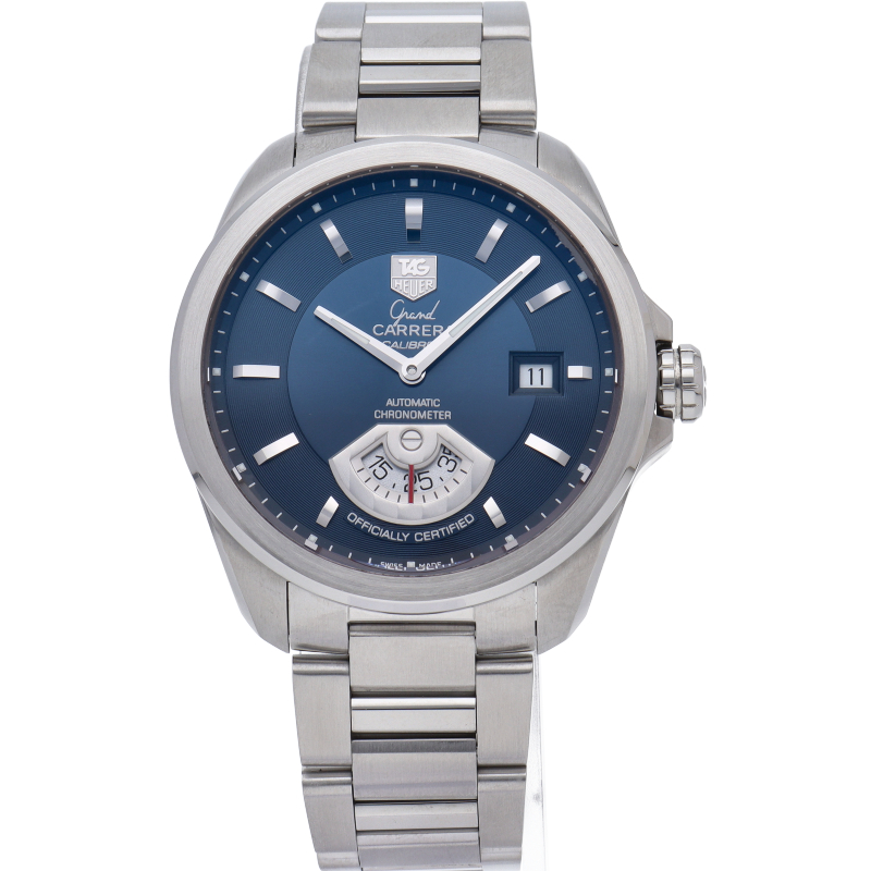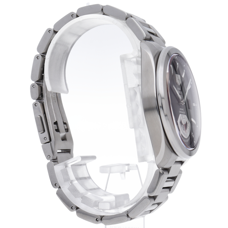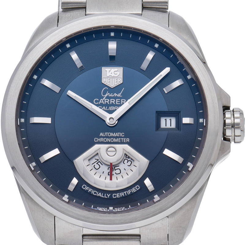 タグホイヤーの上級人気モデル「グランドカレラ」。ディスク回転式のインダイアルを配置、デイト表示機能も搭載した機能性・デザイン性共に優れた1本。