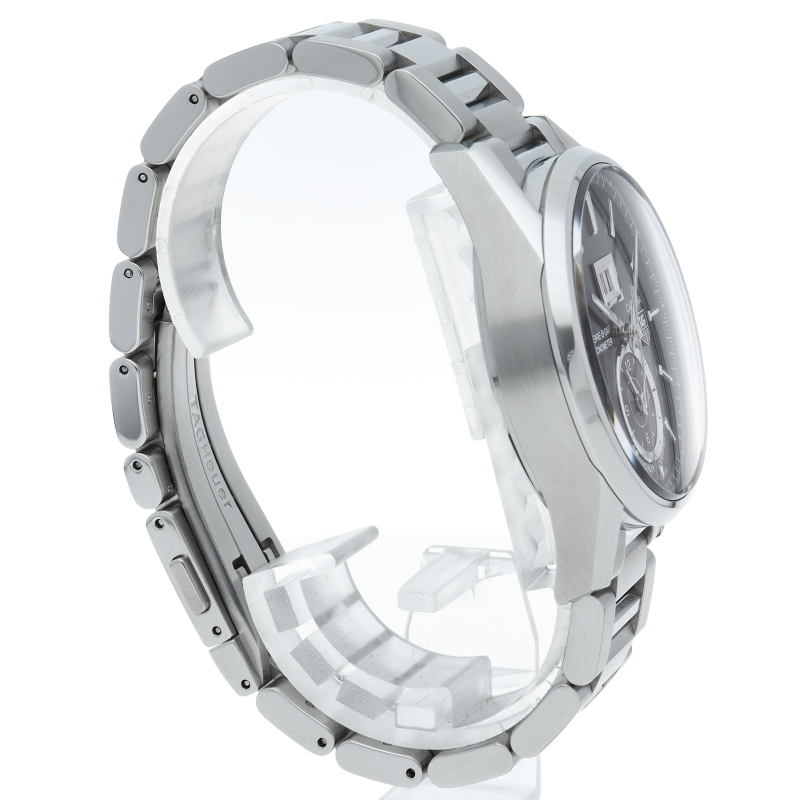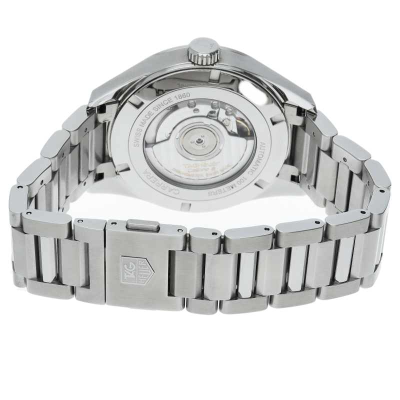 タグホイヤーの定番モデルとなった「タグホイヤー カレラ」のイメージを受け継ぎつつ、旅行に便利なグランドデイトと第二時間帯表示を設けた一本です。ケースは裏スケルトンになっておりますので、モデル名でもある「キャリバー8」を鑑賞することができます。