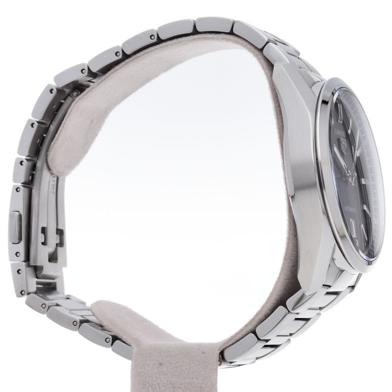 タグホイヤーの人気シリーズ「カレラ」。今までのカレラシリーズが持つスポーティーな雰囲気を守りつつ、クラシックかつエレガントなデザインを与えられたカレラキャリバー5。針に日付表示の機能が備わっていて、デイデイト機能が備わったモデルと比べるとよりすっきりとした文字盤なので視認性も良いです。