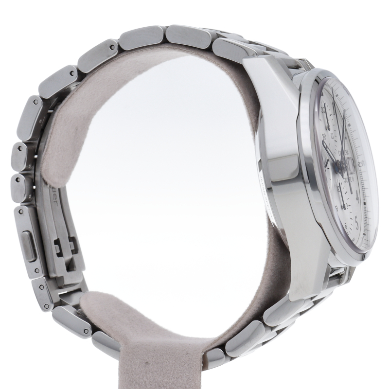 モーターレースからインスピレーションを受けて誕生した“カレラ”。こちらはホワイトオパーリンをベースにブルーをアクセントにした3カウンタークロノグラフで、スタイリッシュなデザインが印象的なモデルです。日本限定500本。ムーブメントは自動巻き“キャリバー16”を搭載。パワーリザーブ42時間、防水性100m。