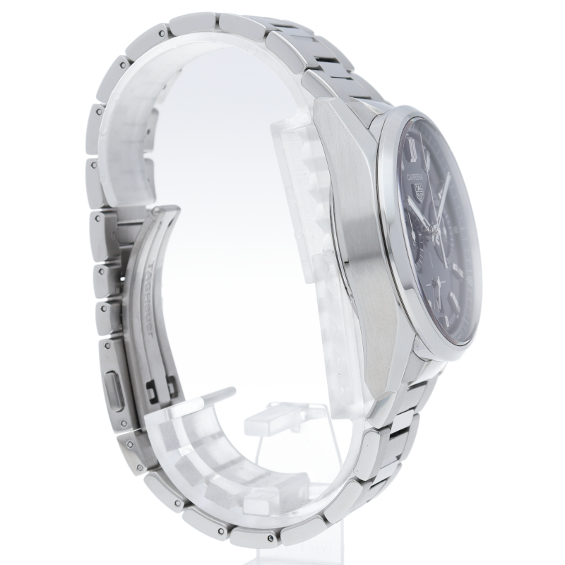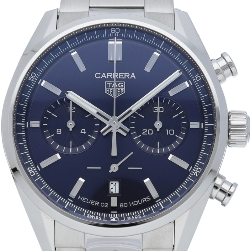 42mmポリッシュ/サテン仕上げステンレススティール製ケース、ロジウムプレートのインデックスと針、輝くブルーサンレイダイヤルが特徴の圧倒的なタイムピース。この由緒あるタグホイヤー カレラが、自信に満ちたエレガントなスタイルでスイスならではの高精度な計時を実現します。