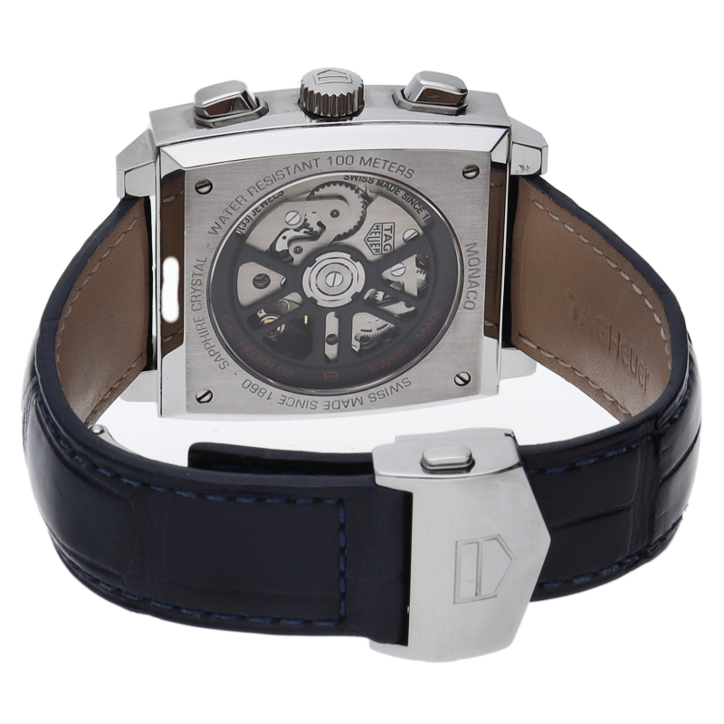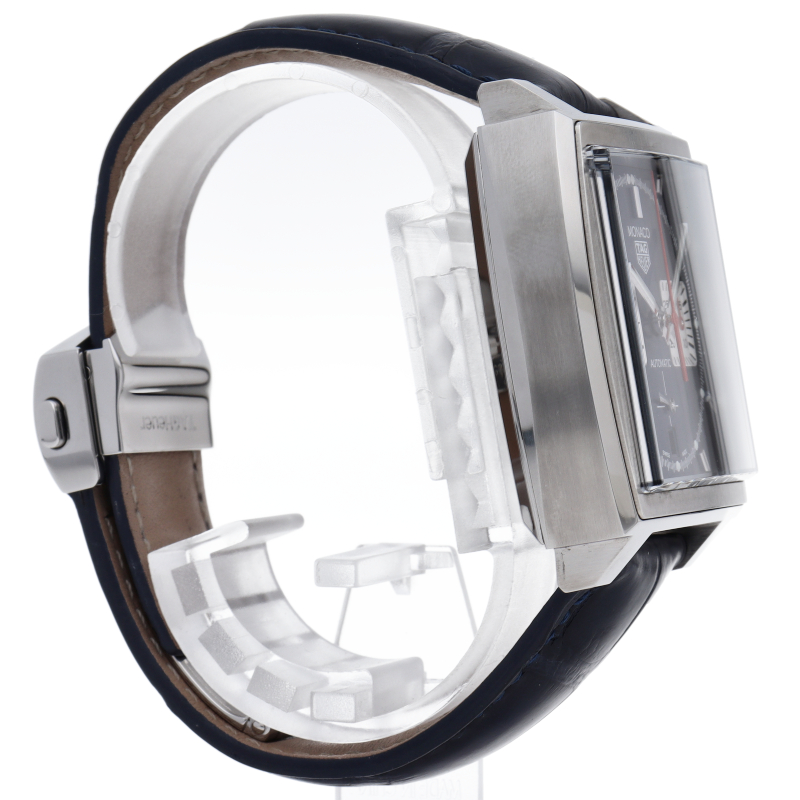 最初に誕生したモナコには、自社製ムーブメント、ホイヤー02が搭載されていました。 オリジナルのモナコのブルーのスクエアケースを踏襲した、ビンテージ性の高いタイムレスなデザインで、80時間のパワーリザーブを備えています。