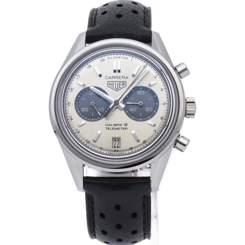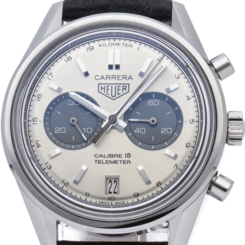 ヴィンテージのホイヤーロゴが印象的なモデル。落ち着いたモノトーンダイアルで、安定感のある二つ目クロノグラフです。腕馴染みの良い39mmケースにキャリバー18を搭載。パワーリザーブは40時間に対応。ダイアル外周にはタキメーターではなく、テレメーターインデックスを備えています。傷のつきにくい「グラスボックス」サファイヤクリスタルが採用されています。