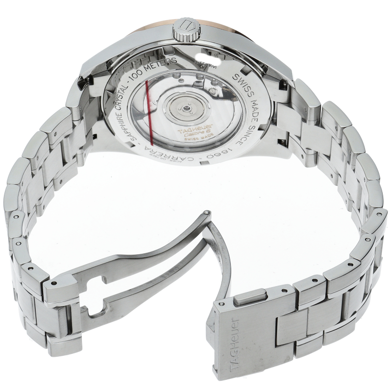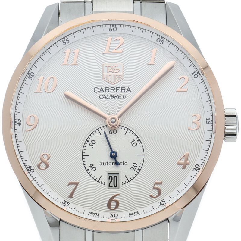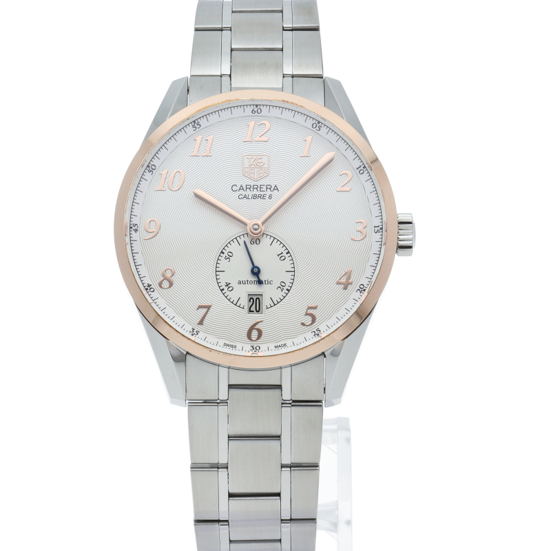 1964年の発表以来、数々のレーシングシーンを支えてきたカレラ。こちらのモデルは6時位置にスモールセコンドと日付表示をセッティングしたベーシックモデル。針、アラビアインデックスがローズゴールドとなり、高級感が向上しています。