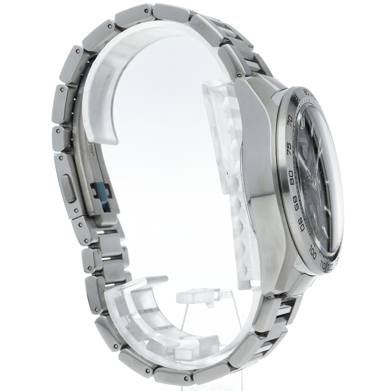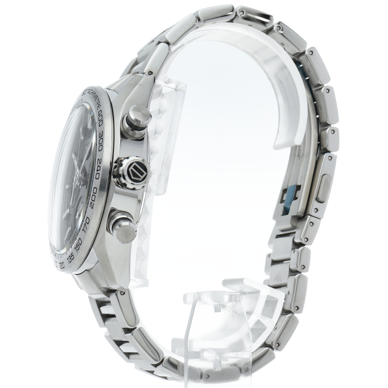 モーターレーシングの伝統を物語る輝かしい栄光を纏ったタグ・ホイヤー カレラ クロノグラフ。 快適性を求めてラグを短くした44 mmのステンレススティール製ケースは、ポリッシュとサテン仕上げが相互に施され、時計をさらに薄くスマートに見せています。