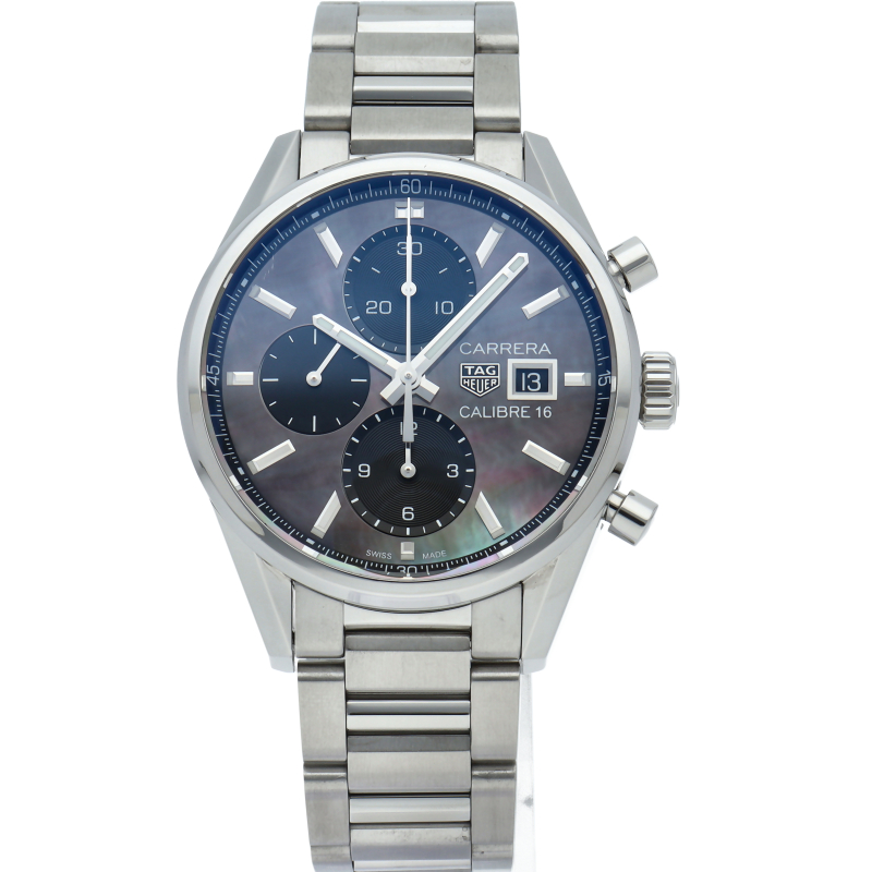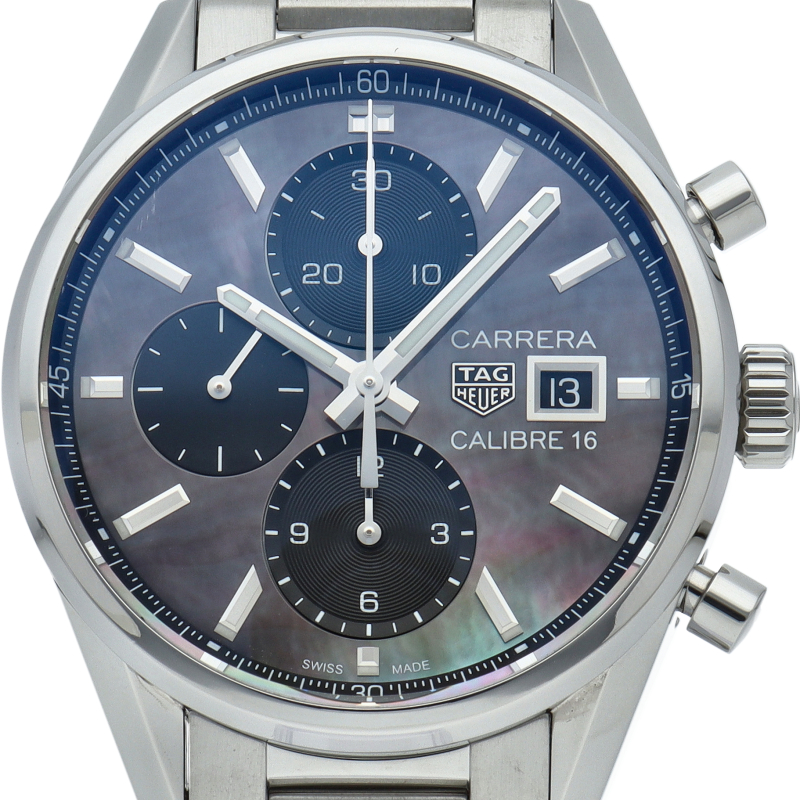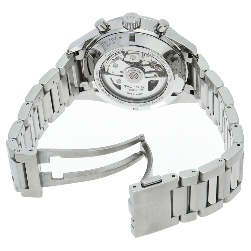 モーターレースからインスピレーションを受けて誕生した“カレラ”。こちらは、日本限定500本の希少なモデルになります。高級感のあるブラックシェル文字盤にブラックのインダイアルを備えたクロノグラフモデルです。