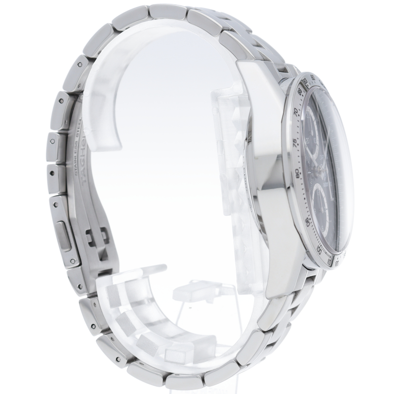 縦に配置された大きめのインダイアルや夜光付きのシンプルな針など、モータースポーツとの関係が深いタグ・ホイヤーらしい、視認性の高いデザインです。ブレスレットも堅牢な造りになっており、モデル名が示す通りとても優雅な印象です。ムーブメントには42時間のパワーリザーブに対応した自動巻 キャリバー16を搭載。100m防水。