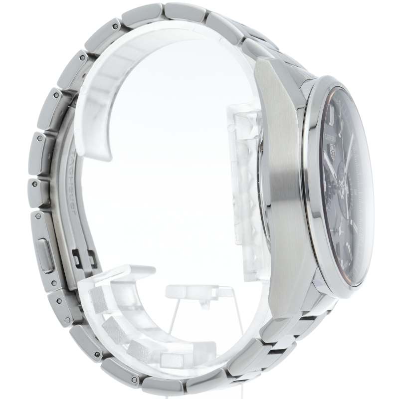 42mmケースを採用したカレラ キャリバーホイヤー02 クロノグラフ。タキメーターベゼルを外したことで、シンプルでドレッシーな印象となっていますのでスーツスタイルにも合わせやすいクロノグラフです。ムーブメントは80時間ものロングパワーリザーブを誇る、垂直クラッチ式クロノグラフムーブメントの「ホイヤー02」を搭載。