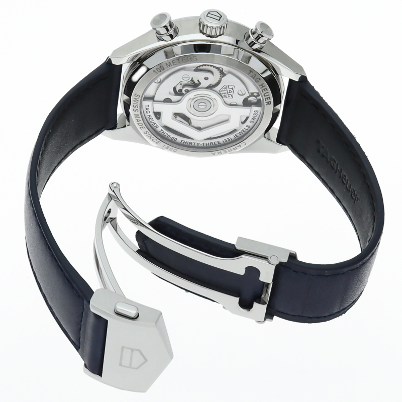 今までのカレラシリーズが持つスポーティーな雰囲気を守りつつ、クラシックかつエレガントなデザインを与えられた「カレラ キャリバーTH20-00 クロノグラフ」。ムーブメントは、自社製自動巻ムーブメント キャリバー TH20-00を搭載。ケースはシースルーバックになっていますので、美しく仕上げられたムーブメントが鑑賞できます。