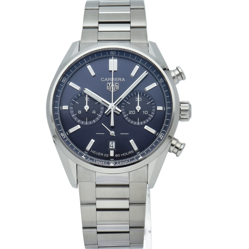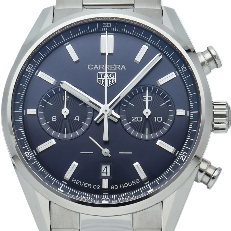 42mmポリッシュ/サテン仕上げステンレススティール製ケース、ロジウムプレートのインデックスと針、輝くブルーサンレイダイヤルが特徴の圧倒的なタイムピース。この由緒あるタグホイヤー カレラが、自信に満ちたエレガントなスタイルでスイスならではの高精度な計時を実現します。