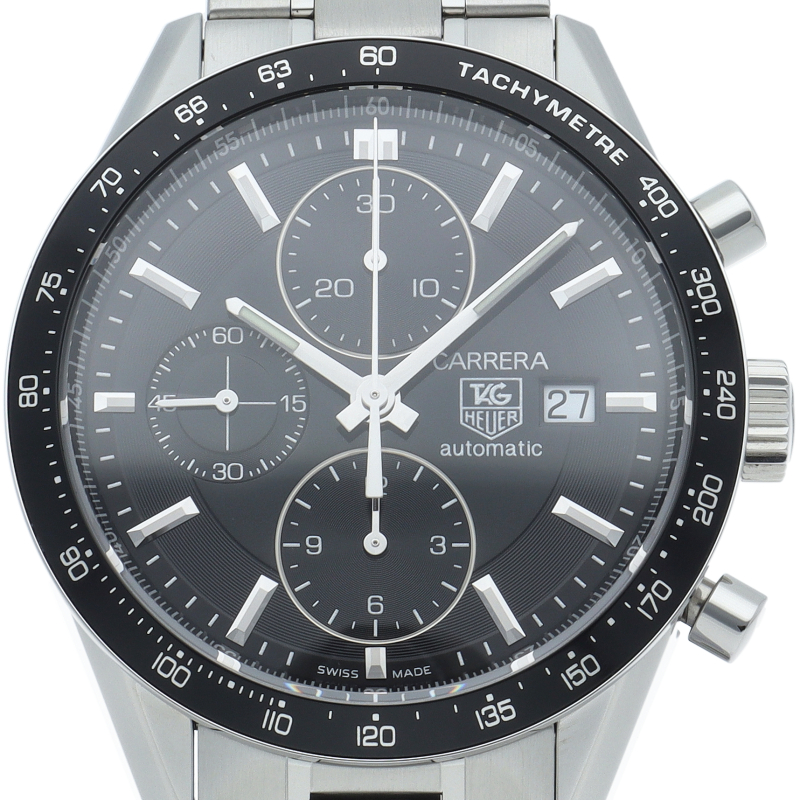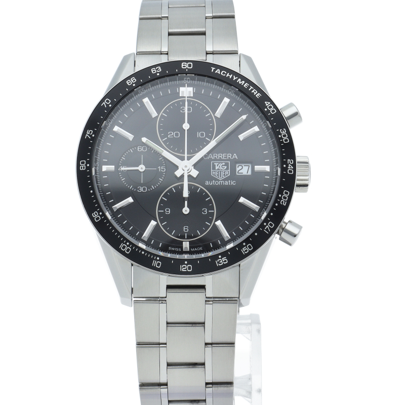 1996年の復刻以来、タグホイヤーのフラッグシップモデルとして絶大な人気を誇る「カレラ」。スポーティなシリーズでありながらエレガントな雰囲気も併せ持つコレクションでありオンオフ問わずご着用いただける汎用性の高い腕時計です。日本限定モデルとして販売された「CV201E.BA0786」は、通常は赤く着色されているクロノグラフ針がシルバーになっており、モノトーンのシックな雰囲気を演出します。