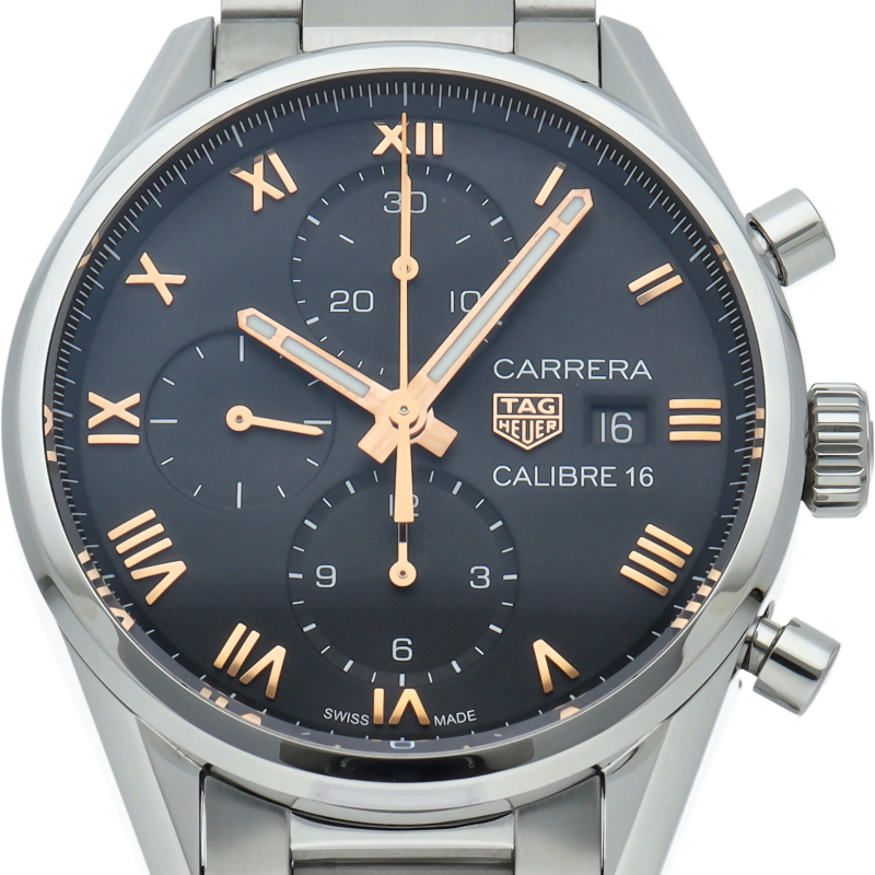 人気の高いタグ・ホイヤーカレラキャリバー16搭載のタグ・ホイヤー カレラ クロノグラフに、ローズゴールドの針と現行のコレクションにはないローマ数字インデックスを採用したエレガントなジャパンリミテッドモデル。400本限定。