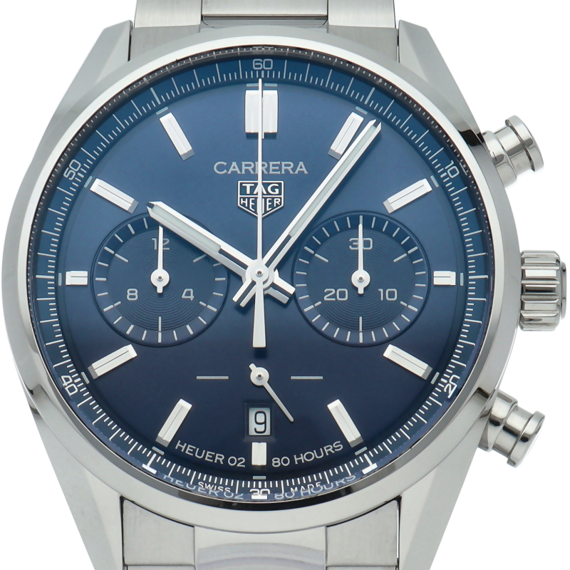 42mmポリッシュ/サテン仕上げステンレススティール製ケース、ロジウムプレートのインデックスと針、輝くブルーサンレイダイヤルが特徴の圧倒的なタイムピース。この由緒あるタグホイヤー カレラが自信に満ちたエレガントなスタイルでスイスならではの高精度な計時を実現します。
