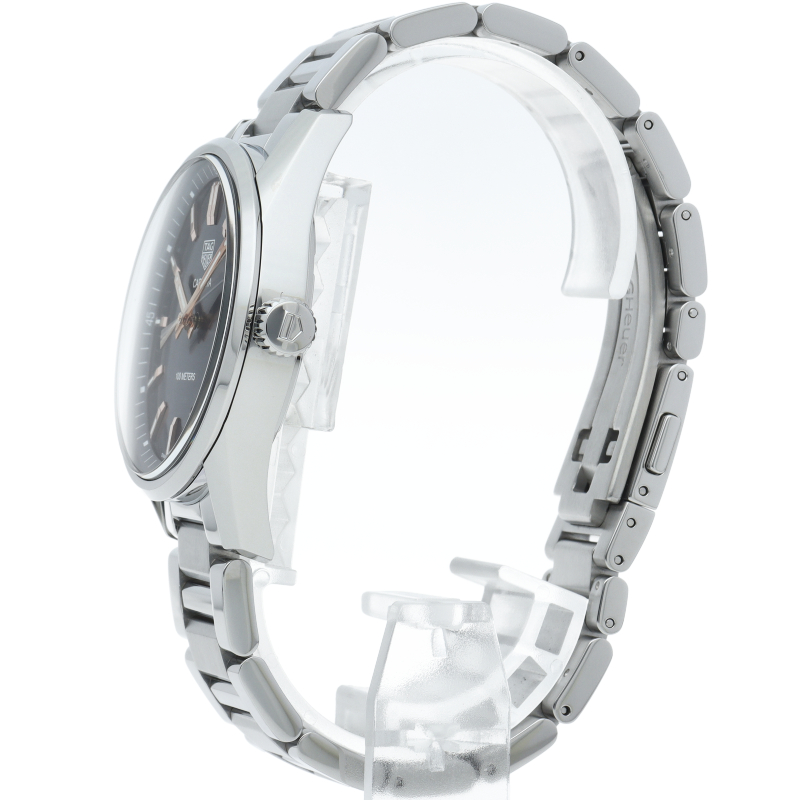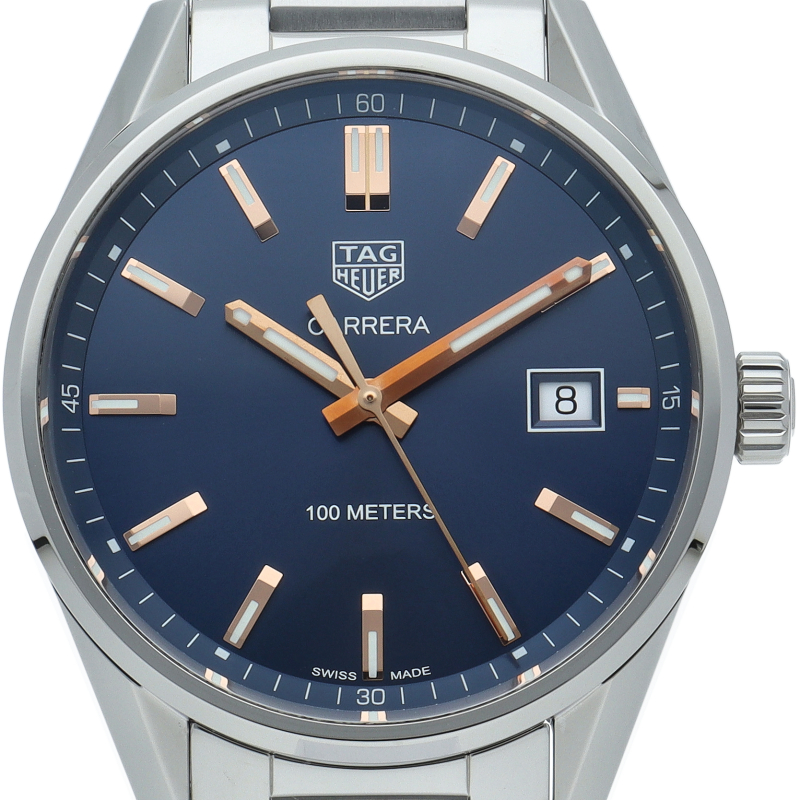 今までのカレラシリーズが持つスポーティーな雰囲気を守りつつ、クラシックかつエレガントなデザインの「カレラ ローズゴールドアクセント」。ブルーダイアル上のアワーインデックスと針にローズゴールドメッキを施して高級感を演出しています。