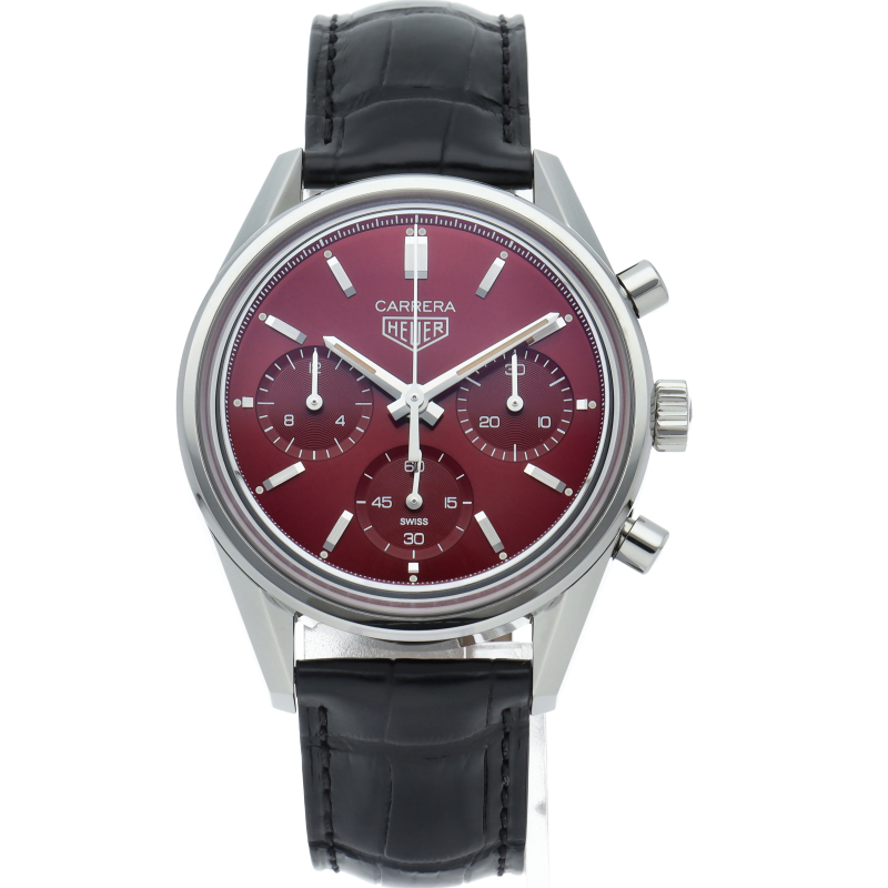 2022年発表の「カレラ キャリバー ホイヤー02クロノグラフレッドダイヤルリミテッドエディション」。ムーブメントにはコラムホイール&垂直クラッチを装備した、80時間パワーリザーブのキャリバーホイヤー02を搭載。ケースバックには「LIMITED EDITION」の刻印がある世界限定600本です。