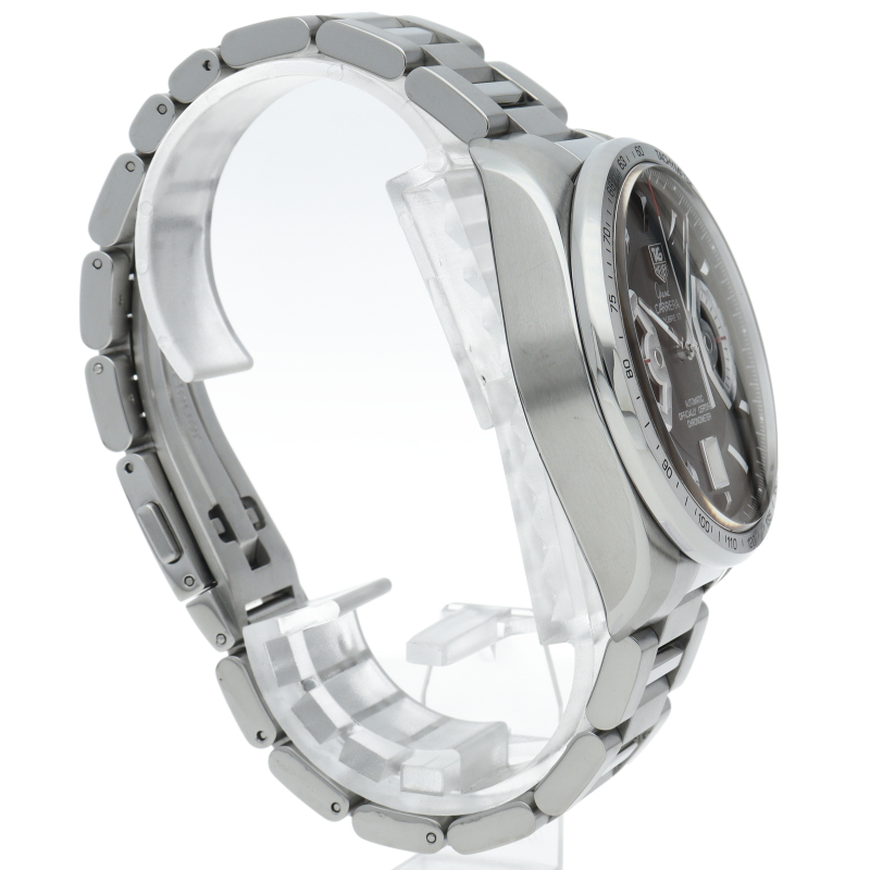 タグホイヤーの上級人気モデル「グランドカレラ」。ディスク回転式のインダイヤルを配置、クロノグラフやデイト表示も搭載した機能性・デザイン性共に優れた1本。