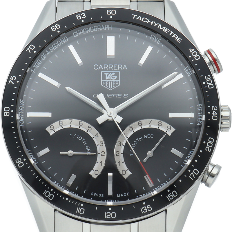 タグホイヤーの人気シリーズ「カレラ」に「キャリバーS」を搭載。230ものパーツと独立した5つの高性能双方向マイクロエンジンが搭載された複雑な機械式ムーブメントと正確なクオーツムーブメントが融合されたものです。