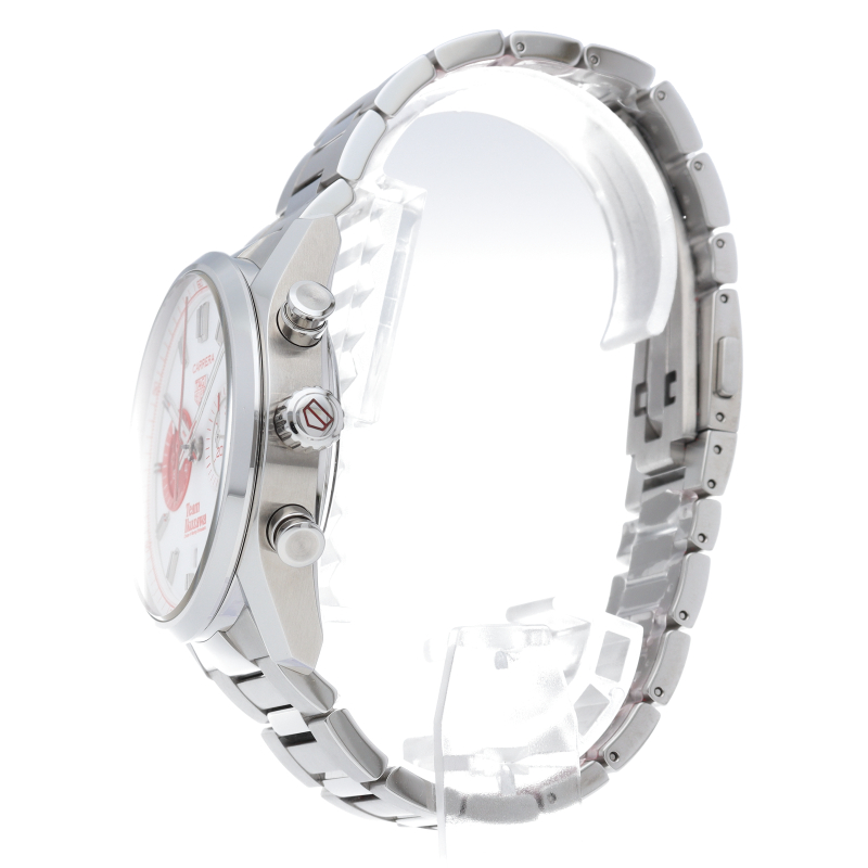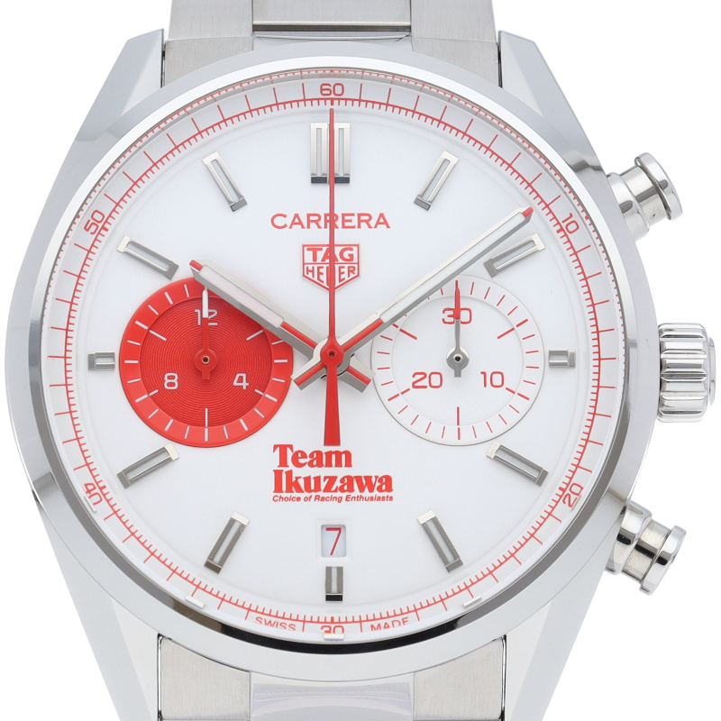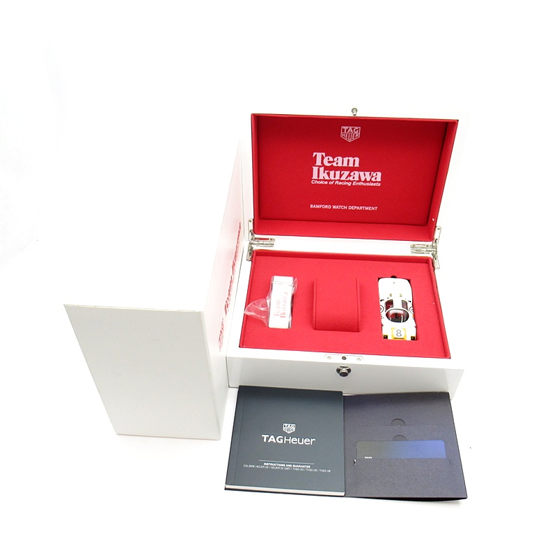 日本のモーターレーシングのヘリテージとアヴァンギャルドなカルチャー、タグ・ホイヤー、チーム イクザワ、そしてバンフォード ウォッチデパートメントのコラボレーションが生み出した、赤と白を基調としたウォッチ。チーム イクザワとそのカルチャーを讃えるモデルです。