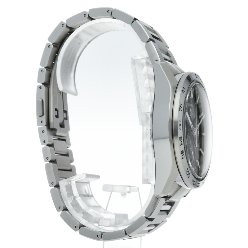 モーターレーシングの伝統を物語る輝かしい栄光を纏ったタグ・ホイヤー カレラ クロノグラフ。 快適性を求めてラグを短くした44 mmのステンレススティール製ケースは、ポリッシュとサテン仕上げが相互に施され、時計をさらに薄くスマートに見せています。