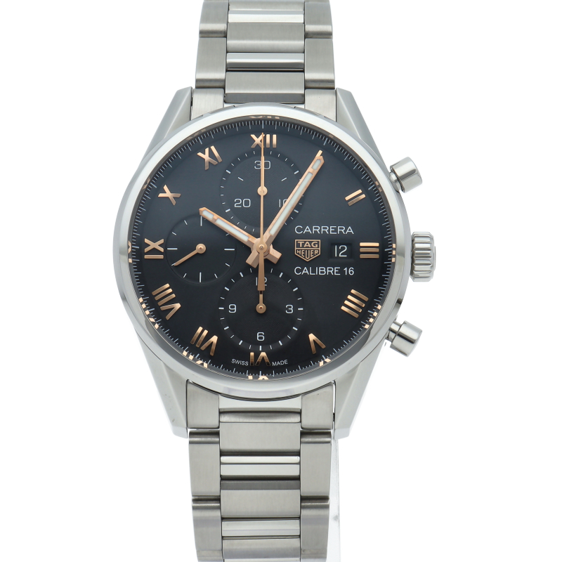 人気の高いタグ・ホイヤーカレラキャリバー16搭載のタグ・ホイヤー カレラ クロノグラフに、ローズゴールドの針と現行のコレクションにはないローマ数字インデックスを採用したエレガントなジャパンリミテッドモデル。400本限定。