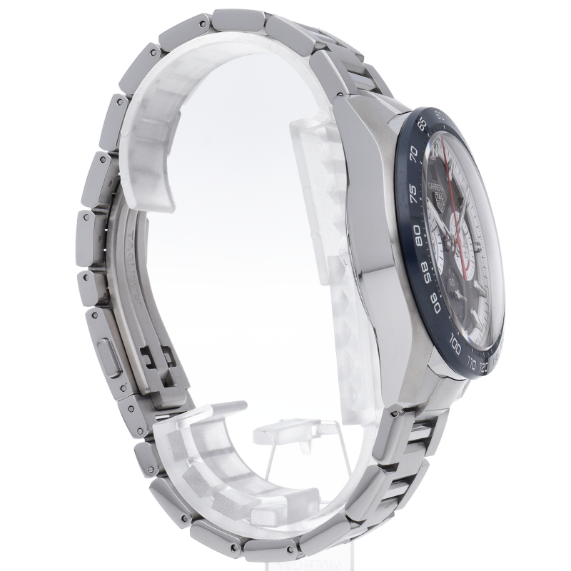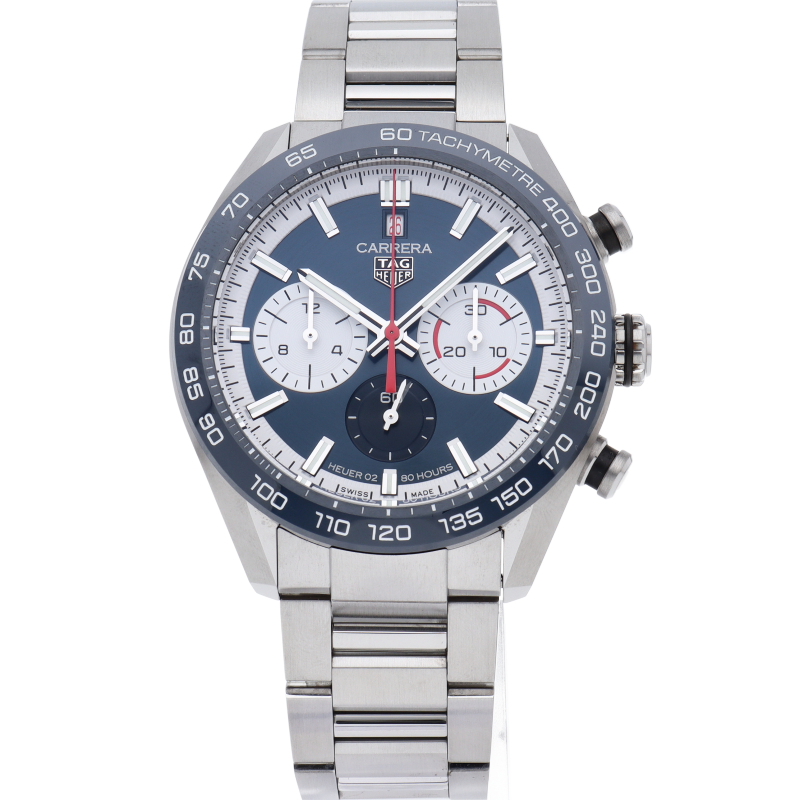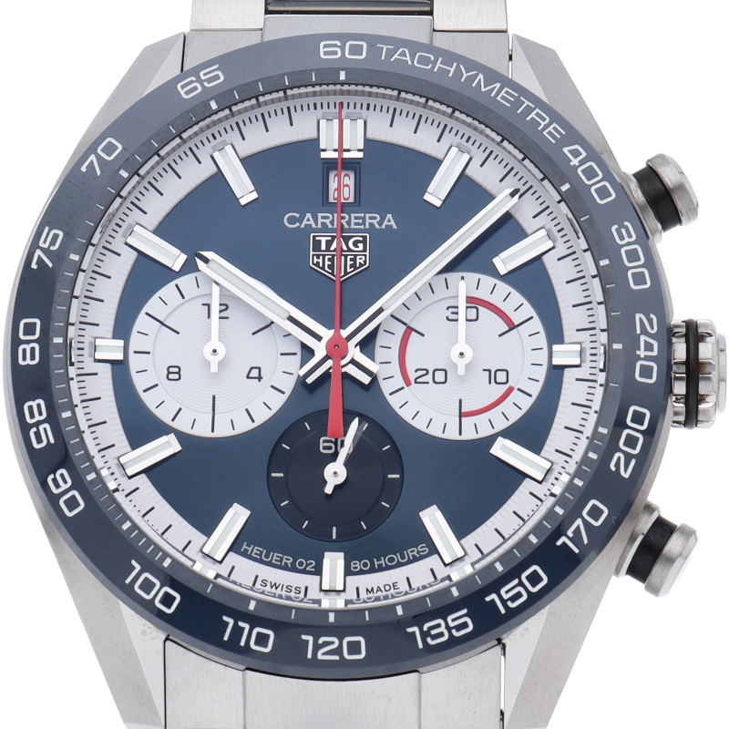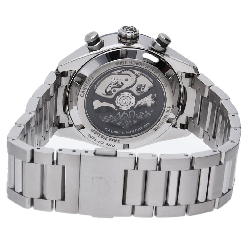 完璧なスタイルで完璧に時を刻む「タグ・ホイヤー カレラ キャリバーホイヤー02 スポーツクロノグラフ」。44mmサテン/ポリッシュ仕上げステンレススティール製ケースの中には、自社製ムーブメントキャリバーホイヤー02が収められています。