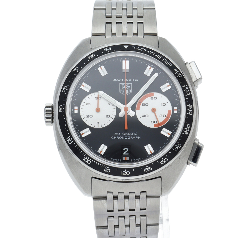 創業家4代目のジャックホイヤーが生み出したとされる「オータヴィア」。過去のオリジナルモデルを元に現在のテイストを加え復刻したこちらのモデルは、左についたリューズや文字盤上のオレンジの差し色などのディテールがレトロな雰囲気を醸しています。当時の雰囲気を楽しめる個性的な1本です。