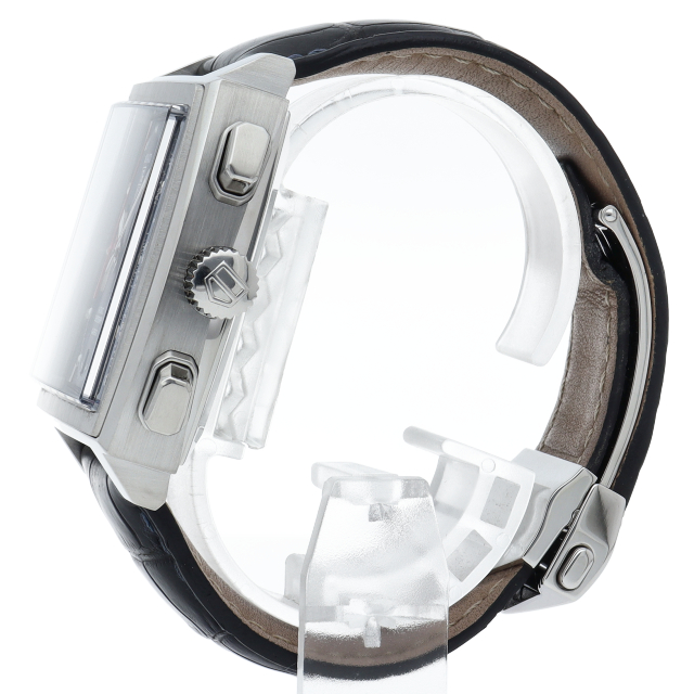 タグホイヤーの人気モデル「モナコ」誕生40周年記念モデル。ケース径が39mmに大型化され、プラスチック風防からサファイアガラスに変更、さらにケースバックは裏スケルトン仕様となりました。