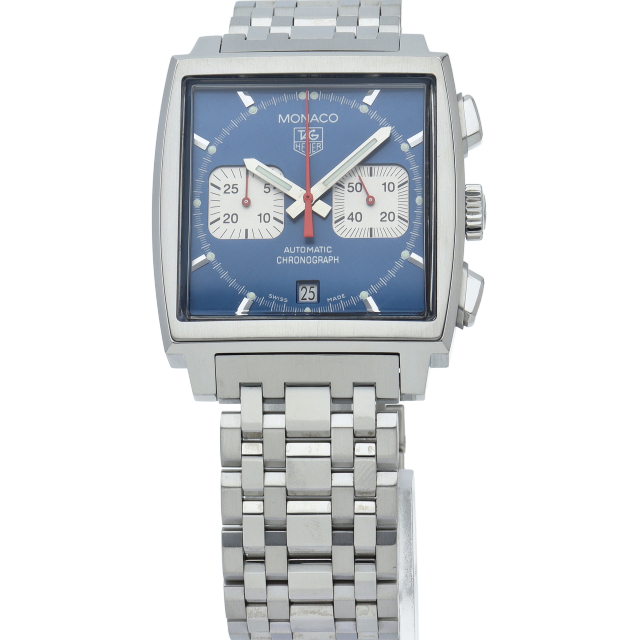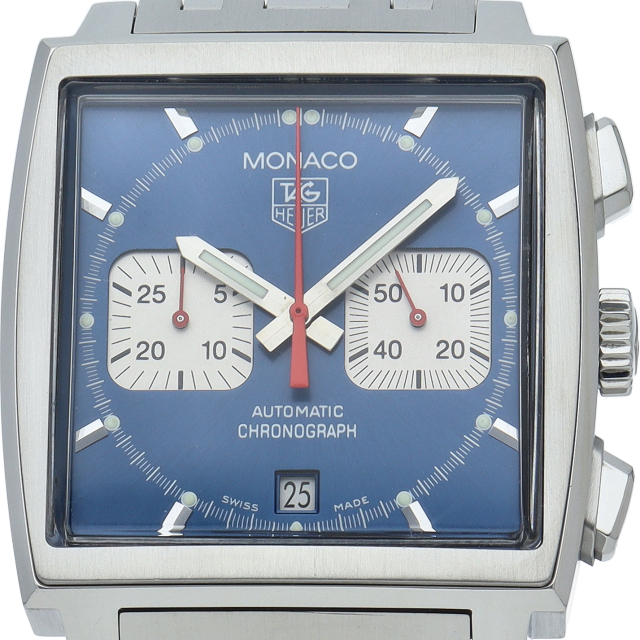 世界初の角型防水ケース時計を搭載したタグ・ホイヤーを代表するクラシックモデルがモナコです。ブルーダイヤルに3カウンターのクロノグラフがクールな印象を与えてくれます。プレキシガラス風防となり、味わい深い雰囲気が演出されています。42時間のパワーリザーブを備える自動巻きクロノグラフムーブメント・キャリバー17が搭載されています。