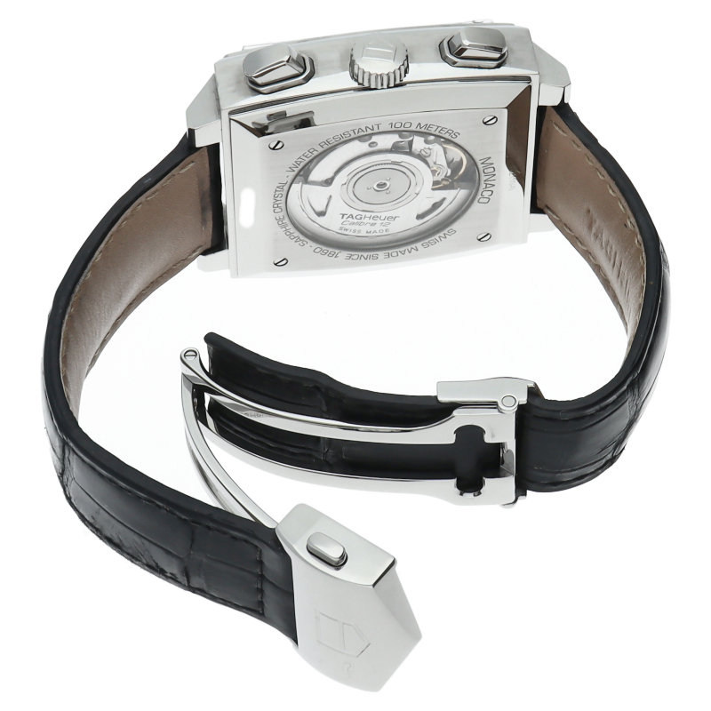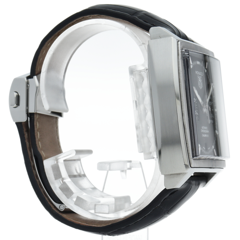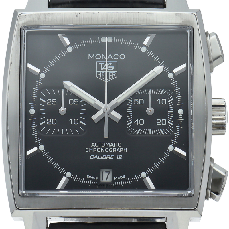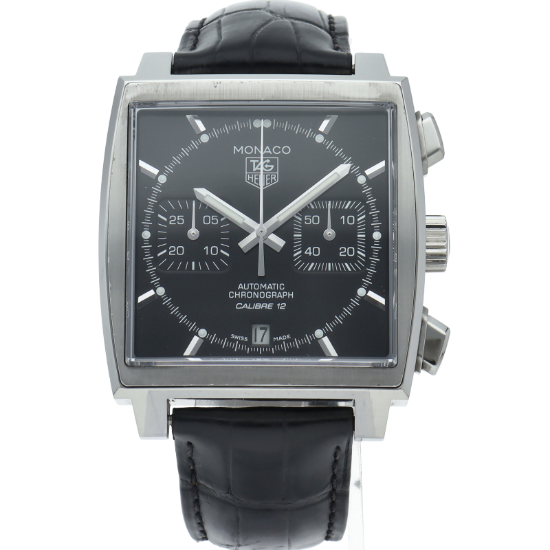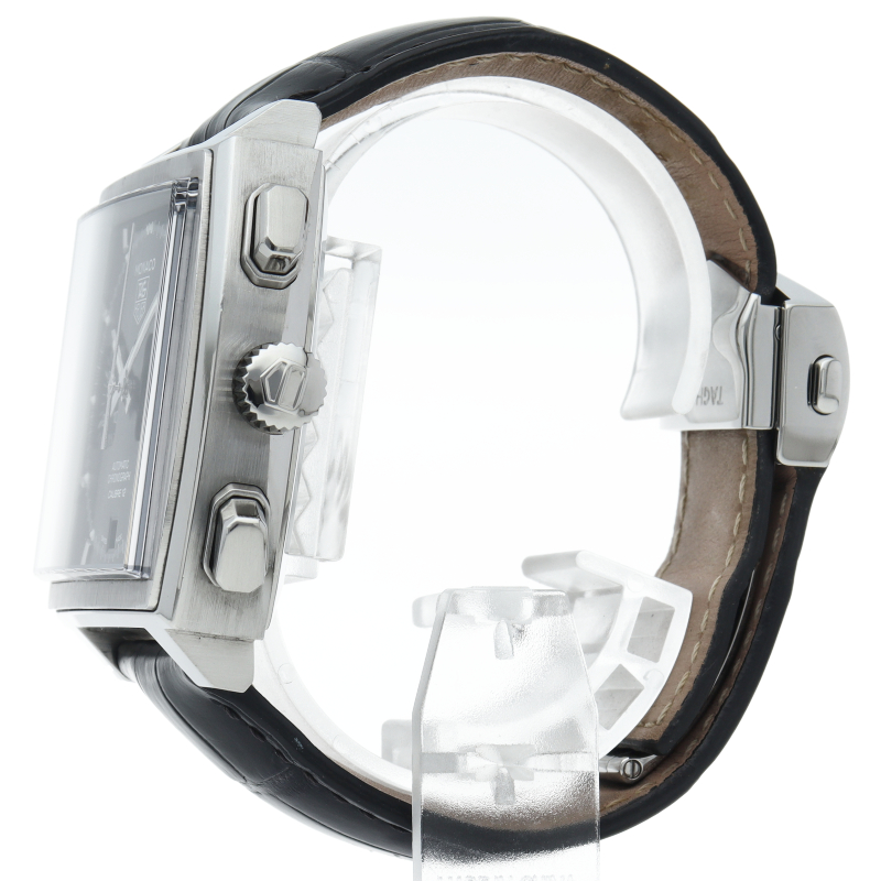 ブラックダイヤルがシックで美しい、モナコ誕生40周年記念モデルです。モナコ特有のスクエアケースにキャリバー12を搭載。風防の素材をプラスチックからサファイアへ進化し、防水性も100mへアップ。