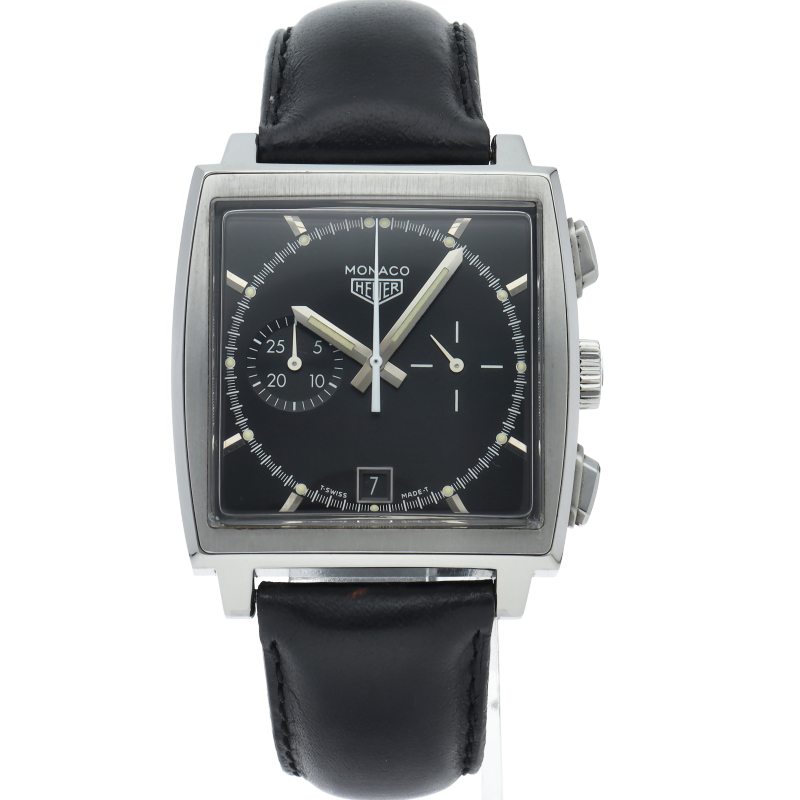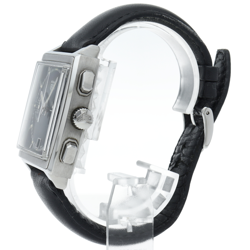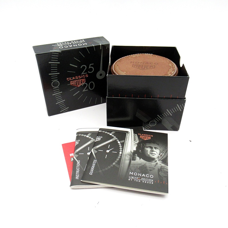 世界限定5000本で発売されたクラシックシリーズのモナコクロノ。文字盤のメーカー表記がタグホイヤーではなくホイヤーとなってます。二つ目のインダイアルが特徴的なクラシカルなクロノグラフです。世界限定5000本。