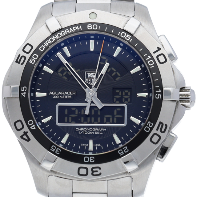 タグ・ホイヤーの人気スポーツウォッチシリーズ「アクアレーサー」。通常のアナログ・デジタル表示に加えクロノグラフ、デュアルタイム、アラーム機能など多くの機能を搭載。タグホイヤーらしい実用性の高い1本となっています。