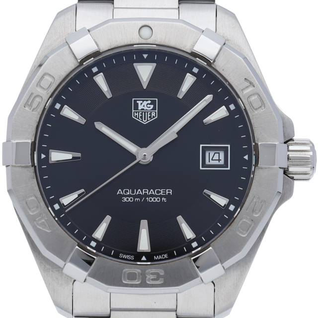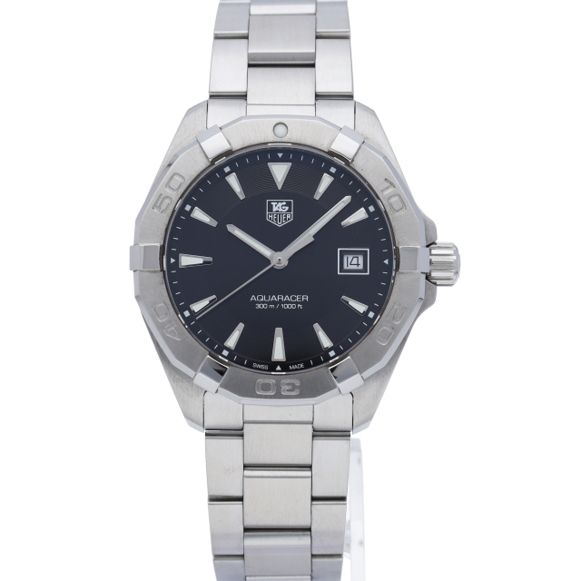 タグ・ホイヤーの人気スポーツウォッチシリーズ「アクアレーサー」。シンプルなデザインで仕上げられた高機能時計です。ビッグデイトと視認性の高いインデックス、逆回転防止ベゼルの装備など本格ダイバーズウォッチです。