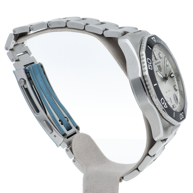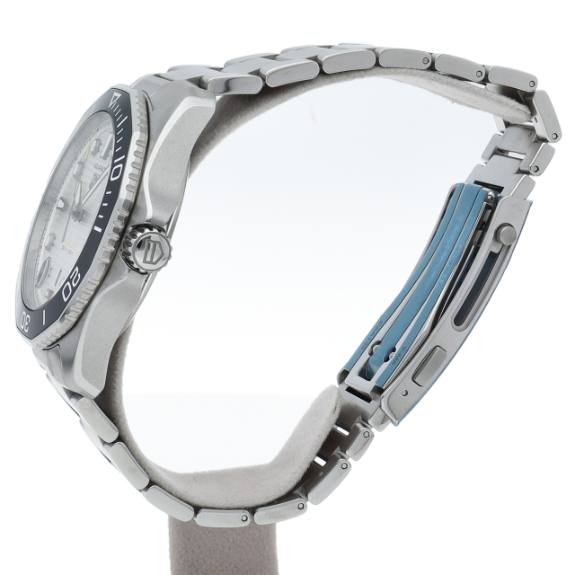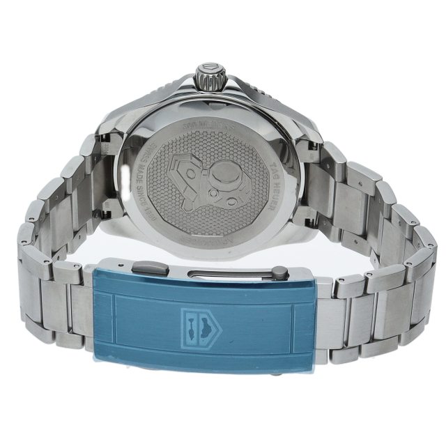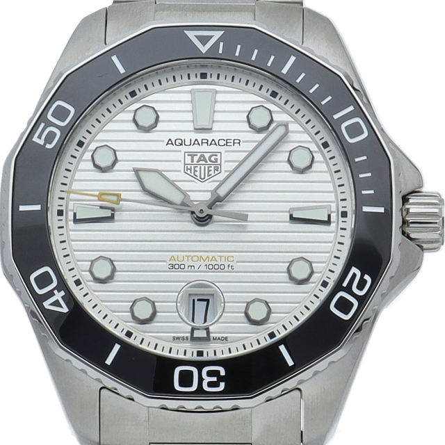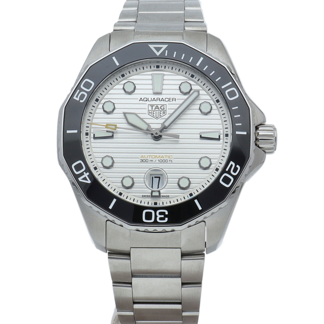 鮮やかなシルバーサンレイ仕上げのダイヤルを備えるタグホイヤー アクアレーサー プロフェッショナル300は、真のダイバーズウォッチ。ホワイトのスーパールミノバがコーティングされた大胆なブラックゴールドプレートの針とアワーマーカーが確かな視認性を約束します。