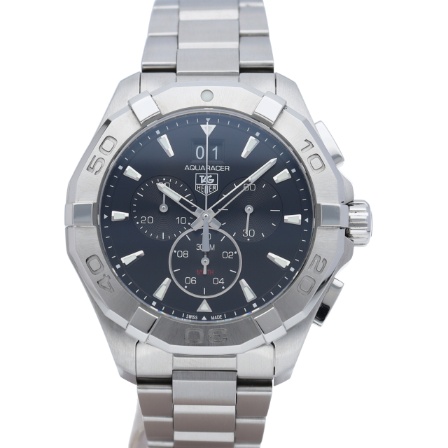 43ミリの大型のケースで主張が強くなったアクアレーサー。12時に配置されたビックデイトや十分の一まで計測可能なクロノグラフ機能が付いた実用性の高い一本です。
