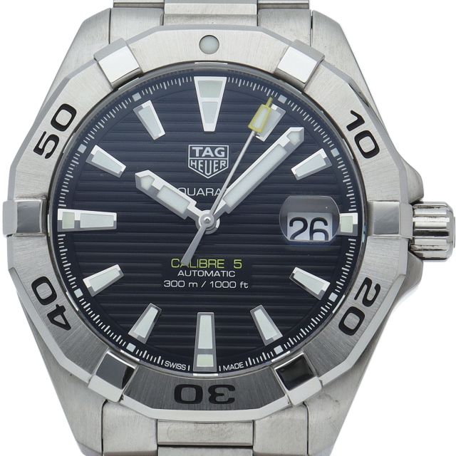 タグ・ホイヤーの人気スポーツウォッチシリーズ「アクアレーサー」。2018年発表のケース径41mmの自動巻きモデル。12角形のダイビングベゼルには6個のライダータブが設けられており、ダイビンググローブを着けたままでの操作性もとても良好です。