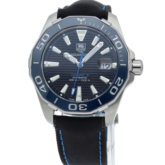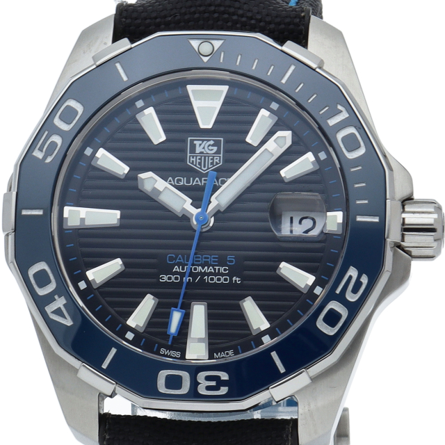 タグ・ホイヤーのダイバーズウォッチが「アクアレーサー」コレクションです。300メートル防水を誇るこちらのダイバーズ・モデルはダイヤルにマリンデッキを彷彿とさせるホリゾンタルライン(水平方向に入った縞模様)が採用されることで、ダイバーズ時計らしい雰囲気が演出されています。回転ベゼルは傷のつきにくいブルー色のセラミック製となり、ダイバーズモデルらしい配色が施されています。