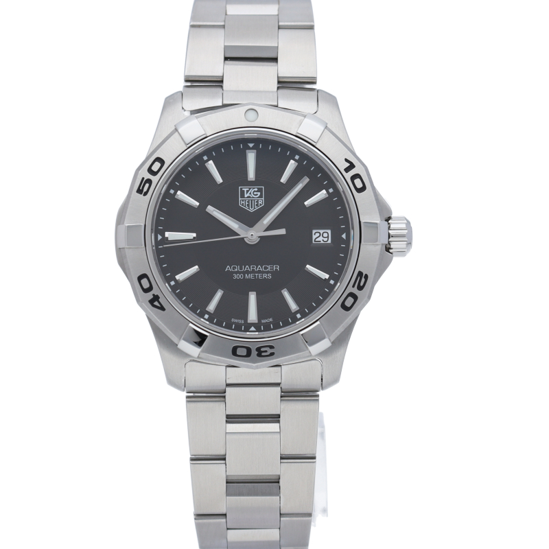 タグ・ホイヤーの人気スポーツウォッチシリーズ「アクアレーサー」。シンプルなデザインで仕上げられた高機能時計です。ホワイトダイヤルと視認性の高いインデックス、逆回転防止ベゼルの装備など本格ダイバーズウォッチです。