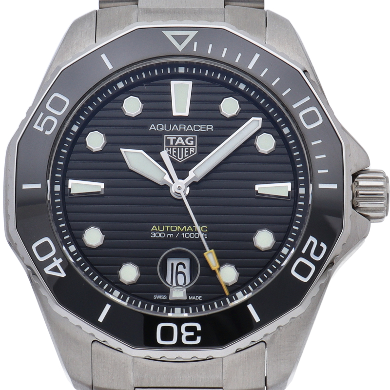 タグ・ホイヤーの人気スポーツウォッチシリーズ「アクアレーサー」。シンプルなデザインで仕上げられた高機能時計です。グレーダイヤルと視認性の高いインデックス、逆回転防止ベゼルの装備など本格ダイバーズウォッチです。
