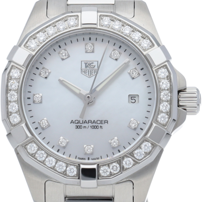 スイス製のこのエレガントなタグ・ホイヤー アクアレーサーは、デザイン性を備えた27㎜ウォッチです。このモデルはスティールおよびゴールド製ケースを採用し、クォーツムーブメントを搭載しています。