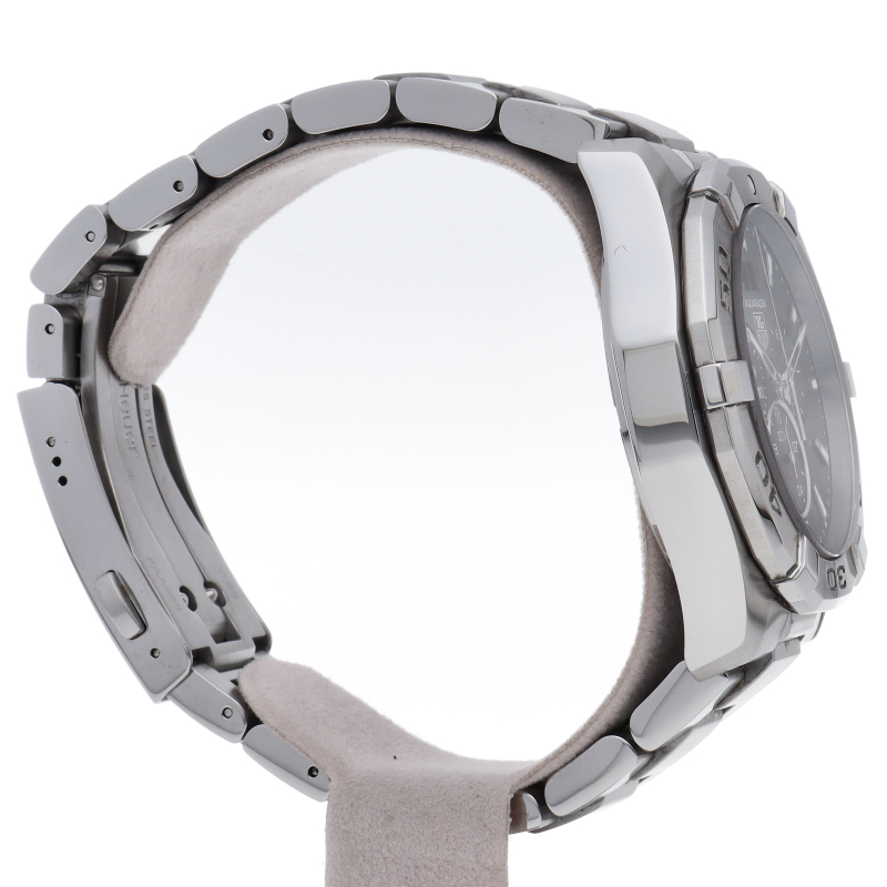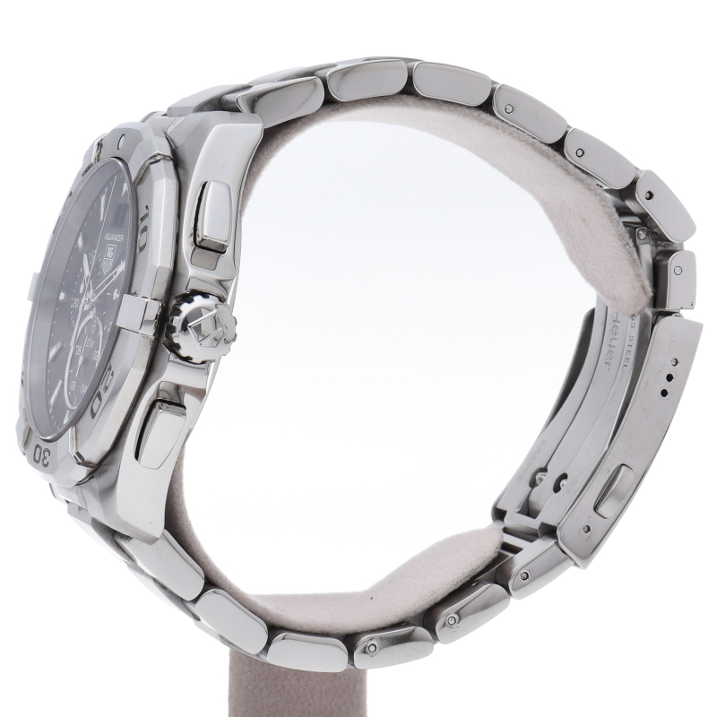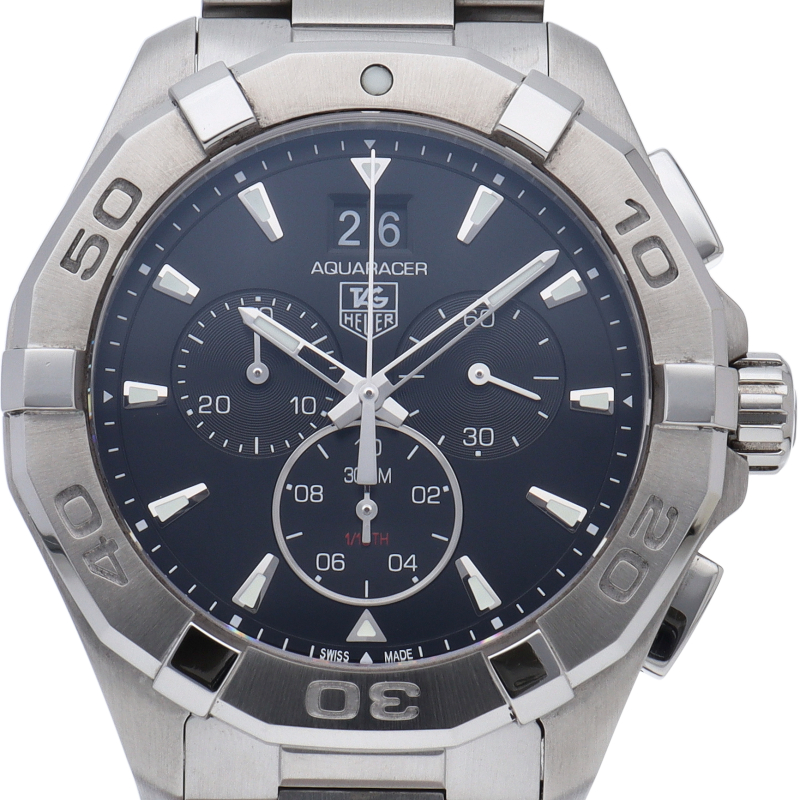 43ミリの大型のケースで主張が強くなったアクアレーサー。12時に配置されたビックデイトや十分の一まで計測可能なクロノグラフ機能が付いた実用性の高い一本です。