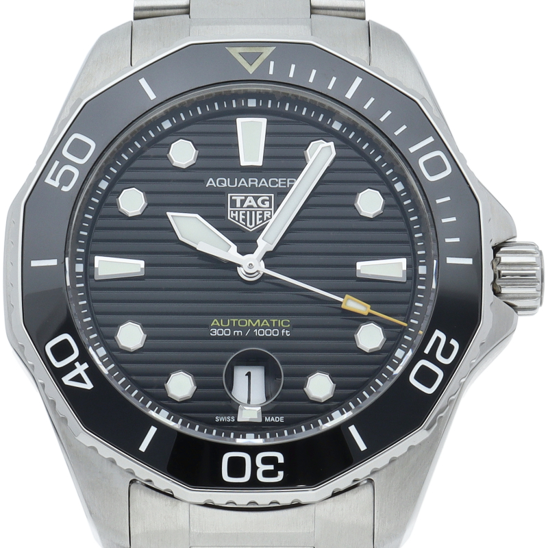 タグ・ホイヤーの人気スポーツウォッチシリーズ「アクアレーサー」。シンプルなデザインで仕上げられた高機能時計です。グレーダイヤルと視認性の高いインデックス、逆回転防止ベゼルの装備など本格ダイバーズウォッチです。