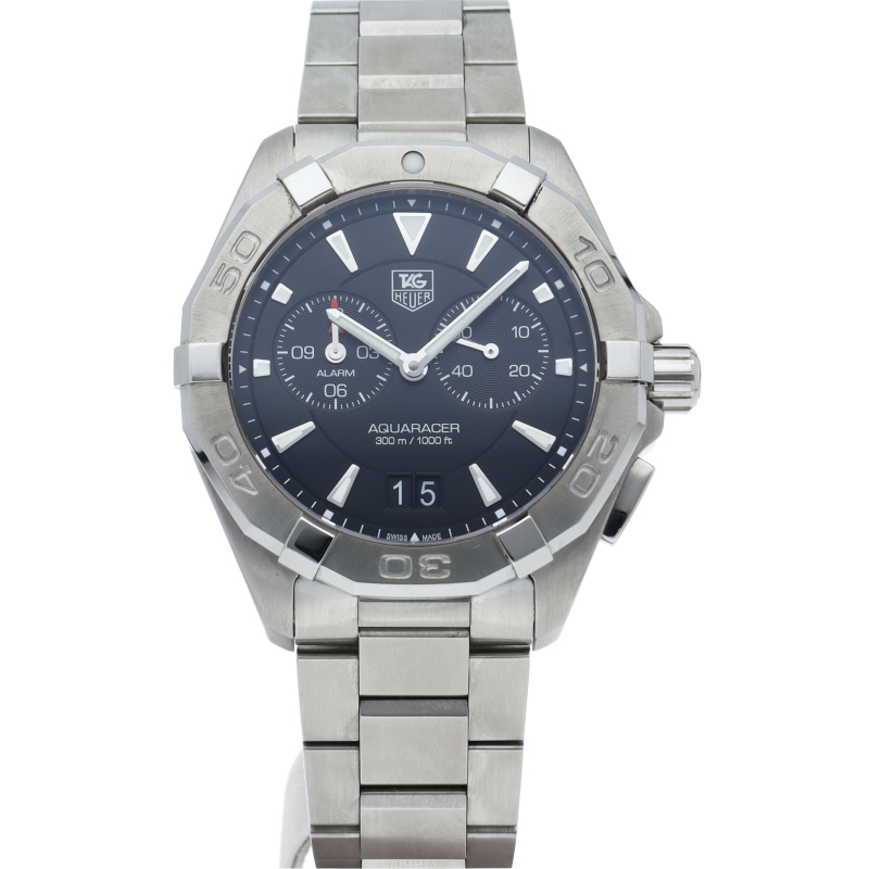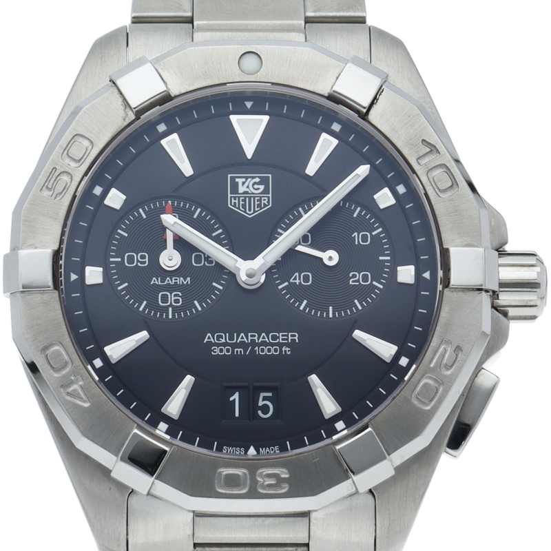 タグ・ホイヤーの人気スポーツウォッチシリーズ「アクアレーサー」。シンプルなデザインで仕上げられた高機能時計です。ビッグデイトと視認性の高いインデックス、逆回転防止ベゼルの装備など本格ダイバーズウォッチです。