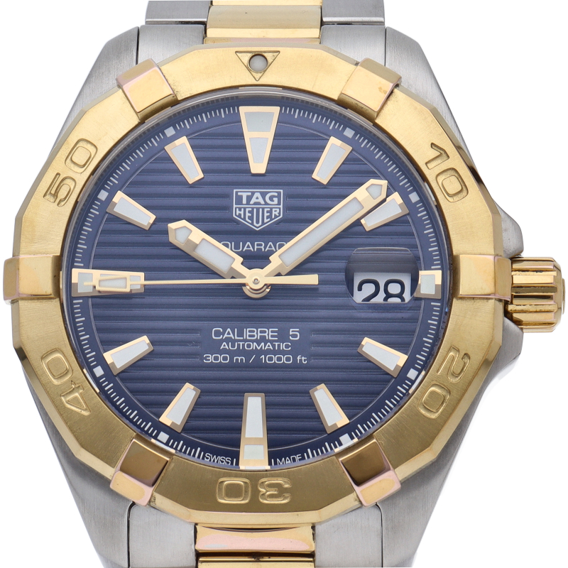 タグ・ホイヤーの人気スポーツウォッチシリーズ「アクアレーサー」。41mmという絶妙なサイズ感のケース径で、300m防水を誇る本格派ダイバーズです。ステンレスとK18ゴールドプレートを施したベゼルや3連ブレスレットの組み合わせにより、スポーティーさと上品さを併せ持つコレクションです。