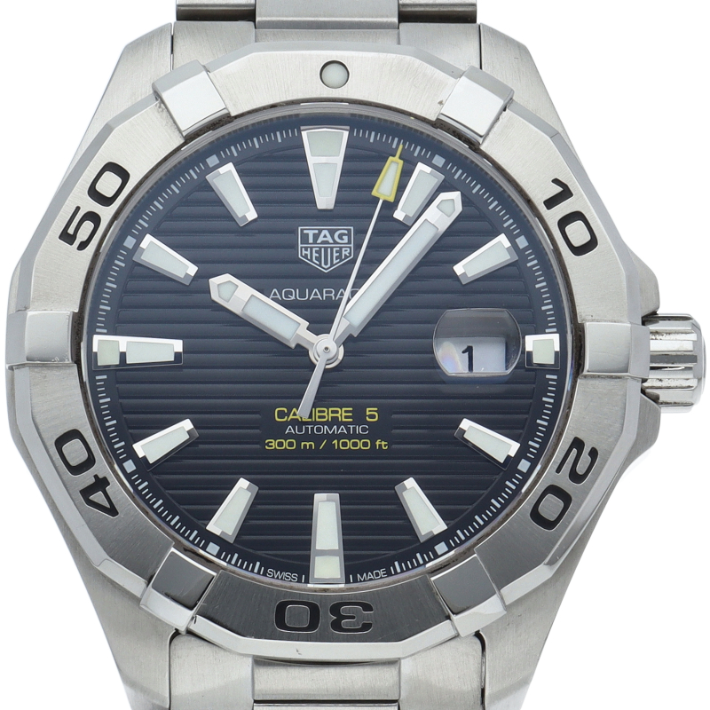 タグ・ホイヤーの人気スポーツウォッチシリーズ「アクアレーサー」。シンプルなデザインで仕上げられた高機能時計です。視認性の高いインデックス、逆回転防止ベゼルの装備など本格ダイバーズウォッチです。