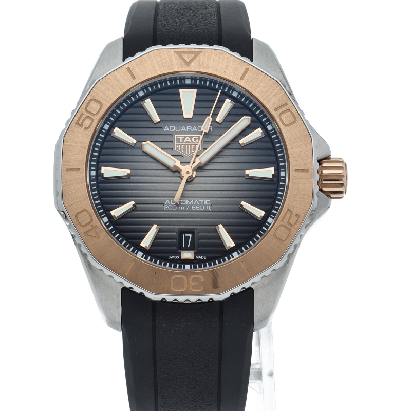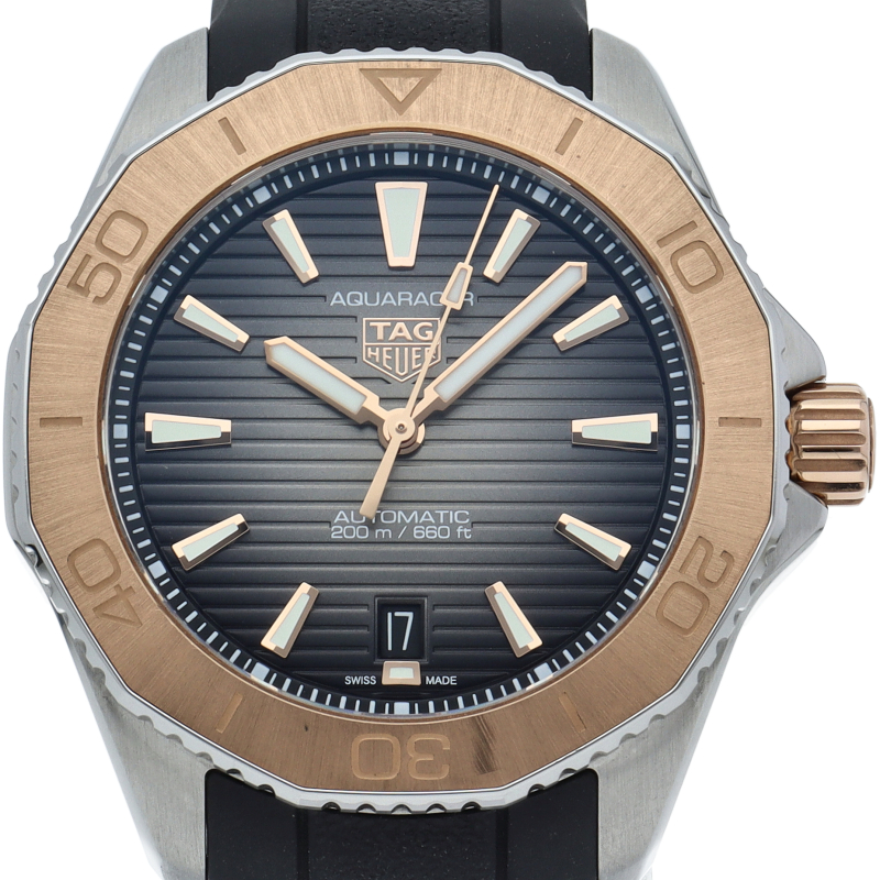 アクアレーサープロフェッショナル200は、タグ・ホイヤーのダイバーウォッチ部門を牽引する200m防水のプロフェッショナルダイバーウォッチとは一線を博した日常使いを目的としたモデルです。こちらは2023年発表の直径40mmケースにキャリバー5を搭載したメンズモデル。スーパールミノバを塗布した大型の針を採用することで視認性を高めています。